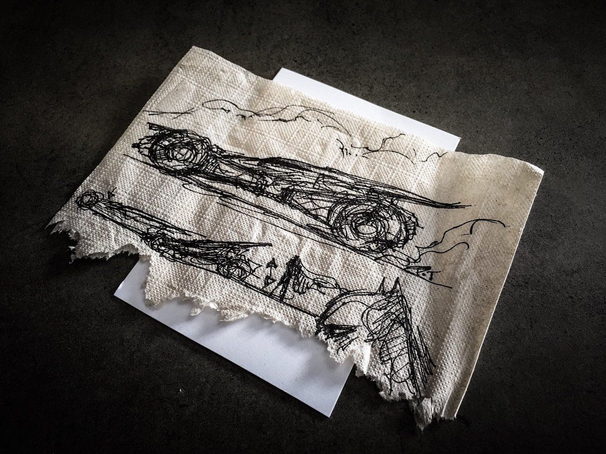 Legendary production designer Patrick Tatopoulos drew one of the first sketches for the new Batmobile on a napkin in 2013.