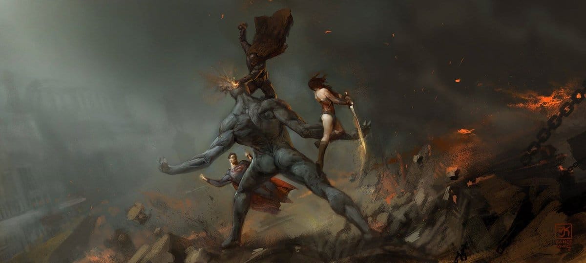 Concept art for the final battle featuring Wonder Woman by Vance Kovacs and Jerx Marantz.